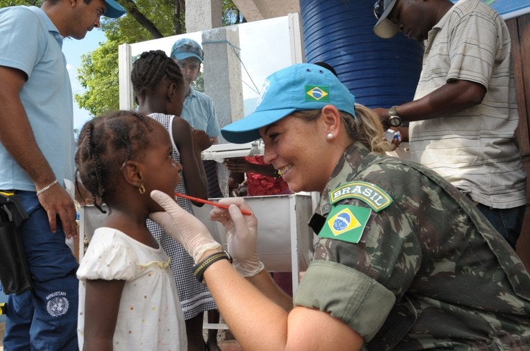 No Haiti, as mulheres se incorporaram as tropas brasileiras em 2006, e até esse momento, 124 mulheres do Exército (62 praças e 62 oficiais) estiveram naquele país como médicas, dentistas, enfermeiras, tradutoras e engenheiras.